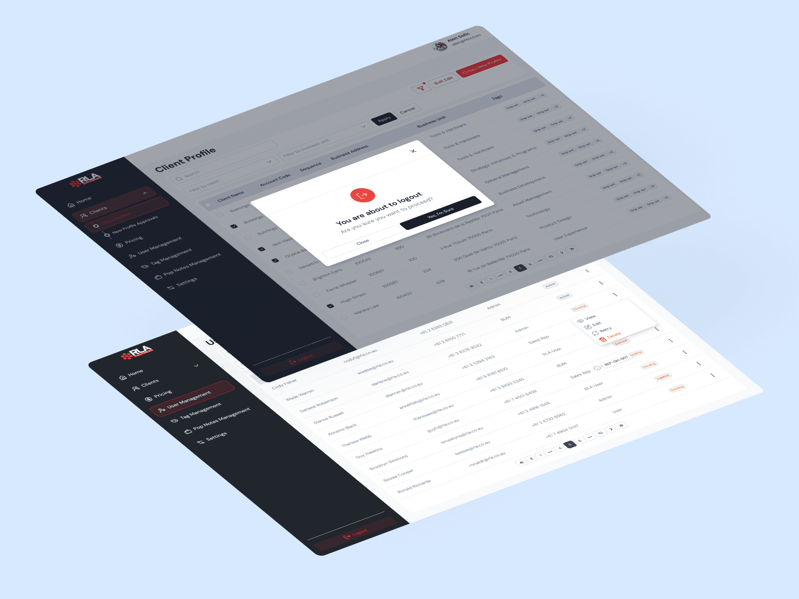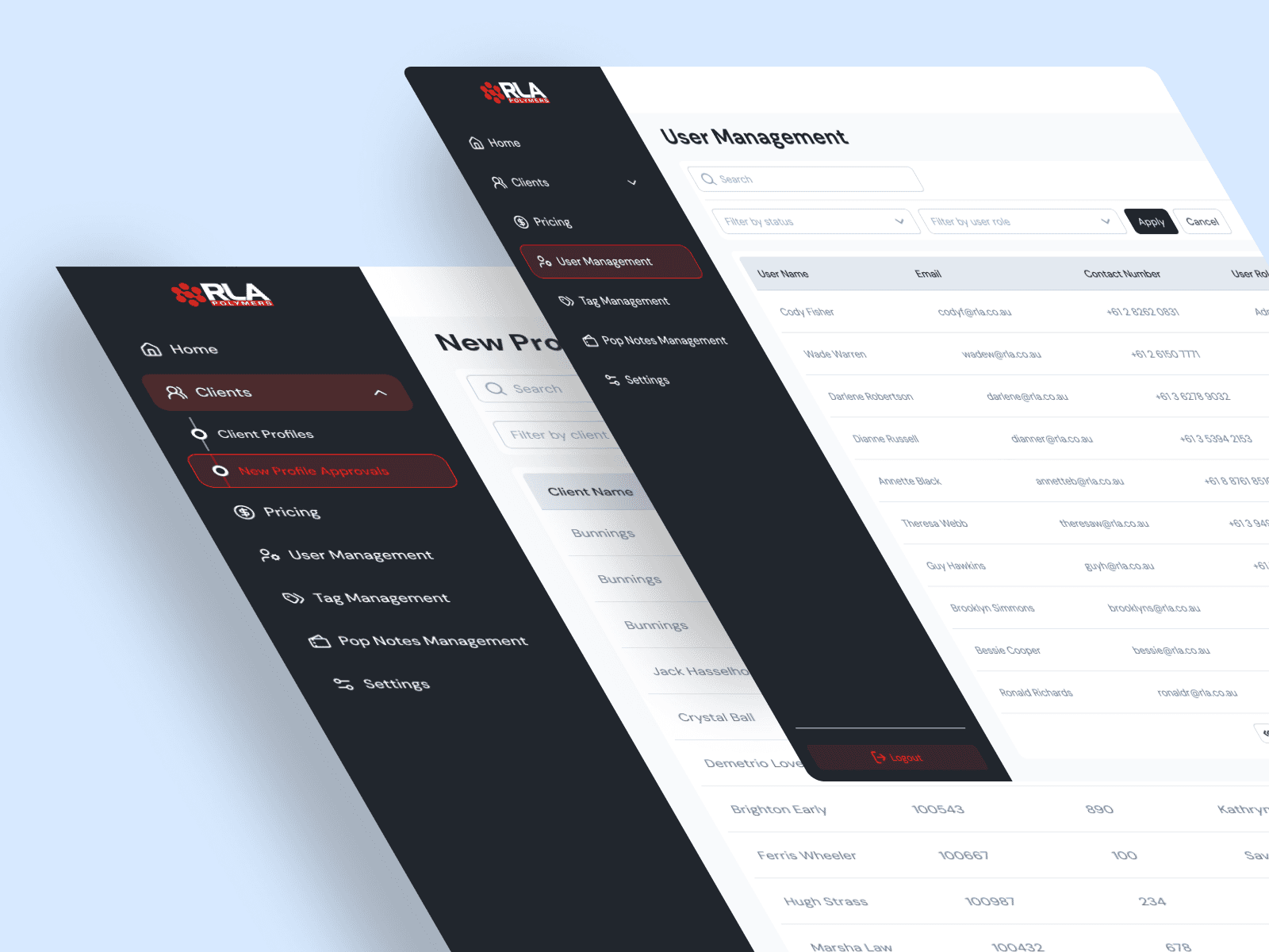 Admins can create, manage, and approve client profiles and users under the RLA ecosystem.Role-Based User Management: